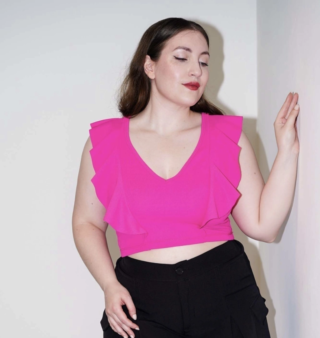 Top con volado de scuba creppe